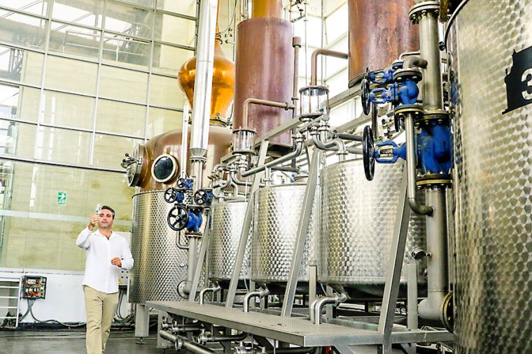 Es aquí donde el jugo de uva recién fermentado llega a un punto de ebullición en el que el líquido se convierte en vapor. Se enfría al pasar por unas tuberías y, tras un proceso de condensación, se convierte en nuestra bebida bandera: el pisco.