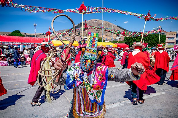 Cada año, en setiembre, Juli se llena de color y alegría con la Festividad de la Exaltación de la Santa Cruz (Orqu Phista), declarada Patrimonio Cultural de la Nación. Durante estos días, don Isaac y sus amigos, Adolfo Arhuata Jiménez, Víctor Nina Quispe y Gerardo Collatupa Condori, todos usuarios de Pensión 65, se colocan sus coloridos trajes de kusillo: pantalón corto de color blanco, zapatillas y medias blancas, saco, máscara, chicote y un pequeño muñeco kusillo, con el que bailan, cantan y juegan junto con la gente, llevando alegría a cada rincón.
