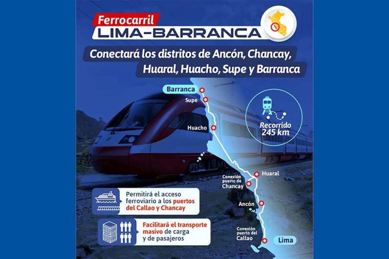 Con ese objetivo, el ferrocarril Lima-Barranca se extenderá a lo largo de localidades densamente pobladas en el corredor costero como Barranca, Supe, Huaral, Chancay y Ancón, con una extensión aproximada de 245 km. Estará diseñado para ser un ferrocarril de tráfico mixto, es decir, para el transporte masivo de pasajeros y mercancías.
