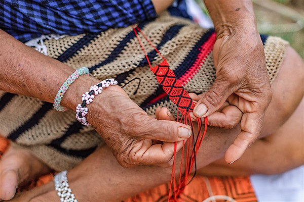 “Esta fibra vegetal es esencial para nuestro trabajo y comercio. De la shambira hacemos cinturones y fajas, que tienen funciones decorativas y simbólicas. También hacemos bolsos para la recolección de frutas, plantas y otros alimentos. Además de las redes para pescar y hamacas. Es un ingreso adicional, pero también es la forma como nos conectamos con la naturaleza, nuestros ancestros y la magia de la selva”, reflexiona Teresa López, la sabía matsés que se ha propuesto cuidar y promover la cosmovisión de su pueblo originario.