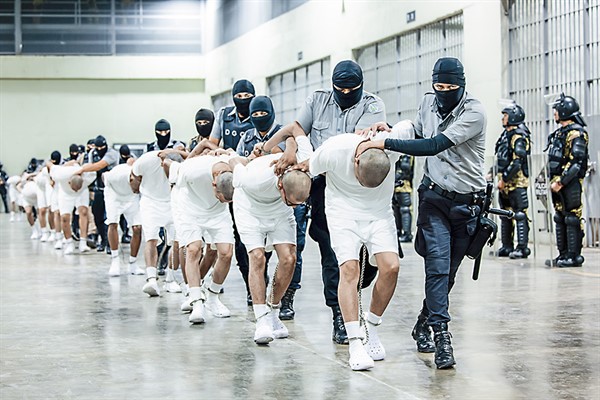 Ya en el pasado, muchos de los 15,000 miembros de la MS-13 y la pandilla rival Barrio 18 presos en la megacárcel fueron mostrados así, en visitas diseñadas para la prensa.