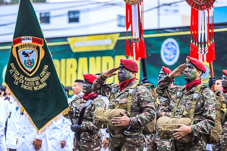 Lucha frontal contra las drogas busca acabar con la violencia que atenta contra la paz que anhelan los peruanos, señaló la mandataria en el 34.° aniversario de la Dirandro.