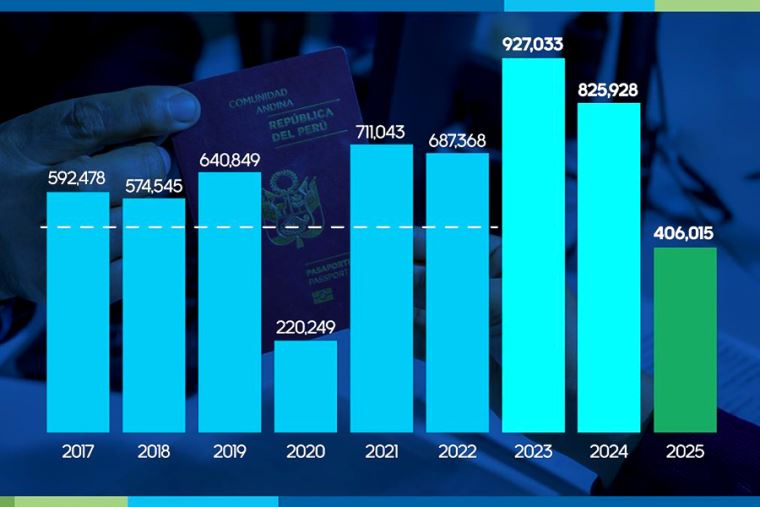 El promedio anual de emisión del documento de viaje entre el 2017 y el 2022 es de cerca de 600 000 pasaportes. Esa media fue superada el 2023 y 2024, con 927 000 y 825 000 libretas, respectivamente.