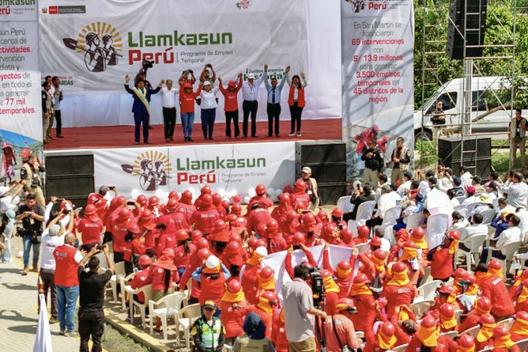 Seguidamente, la jefa de Estado informó que, desde la creación del programa Llamkasun en 2023 hasta la fecha, se han generado más de 447 000 empleos temporales en 1836 distritos del país. “Hemos alcanzado el 97% de cobertura nacional y en el 2026 llegaremos al 100%”, subrayó.