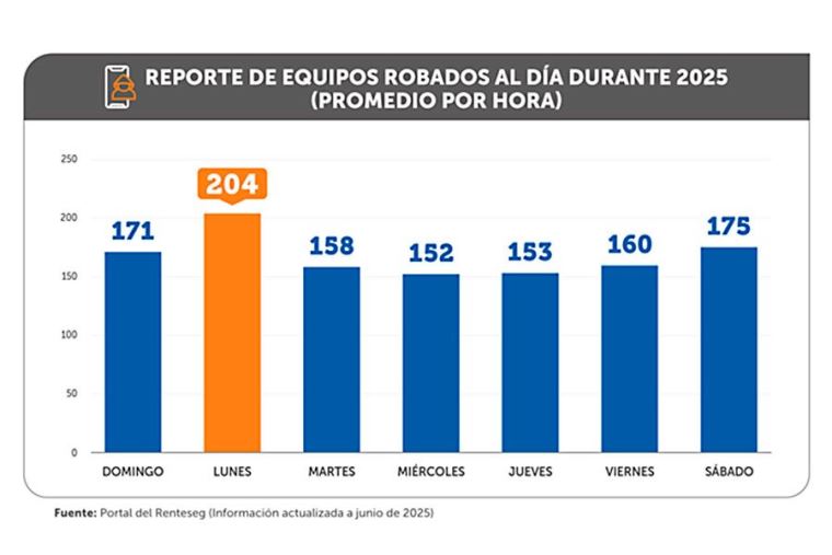 Según el Registro Nacional de Equipos Terminales Móviles para la Seguridad (Renteseg), este descenso marca una tendencia sostenida. En los últimos ocho años, el robo de celulares en el país se redujo en 38%, pasando de un promedio de 6500 equipos robados por día a 4200 al cierre del primer semestre del 2025.