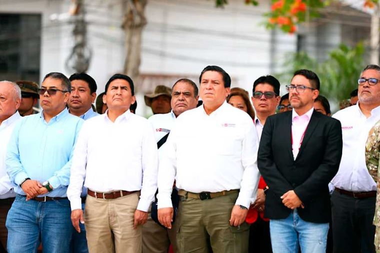 Más temprano, el ministro Tiburcio participó en la ceremonia de izamiento del Pabellón Nacional y entonación del Himno Nacional en la plaza de armas de Chiclayo.