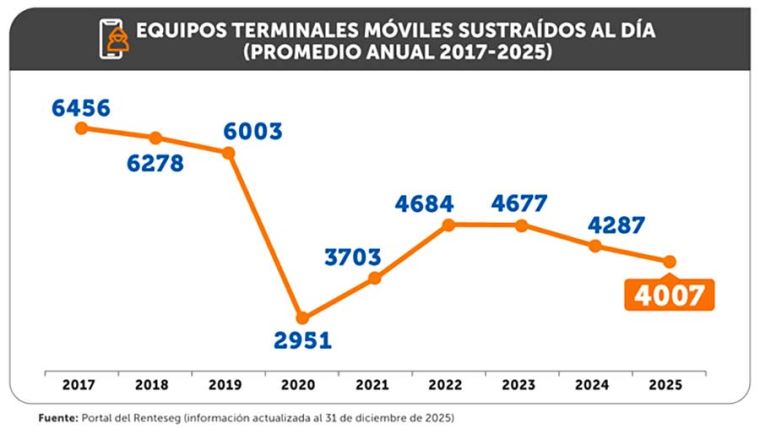 El regulador explicó que esta reducción responde a la implementación de medidas de control más estrictas, entre ellas el bloqueo de equipos móviles robados, alterados o no registrados en la lista blanca del Renteseg. A ello se suman las medidas temporales adoptadas por el Estado en la lucha contra la criminalidad.