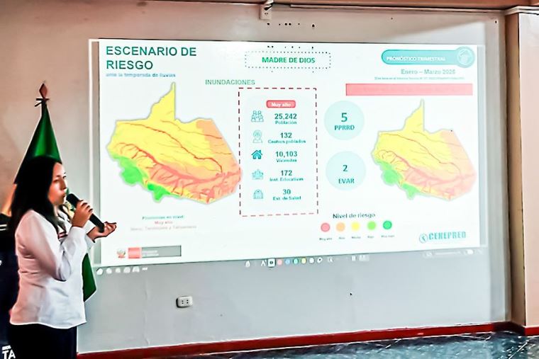 En las regiones de Madre de Dios y Lambayeque se realizaron exposiciones técnicas sobre los escenarios de riesgo por lluvias para el periodo enero y marzo de este año, y se realizaron coordinaciones para mejorar la programación y el uso eficiente del Programa Presupuestal 0068–Reducción de la Vulnerabilidad y Atención de Emergencias por Desastres, respectivamente.