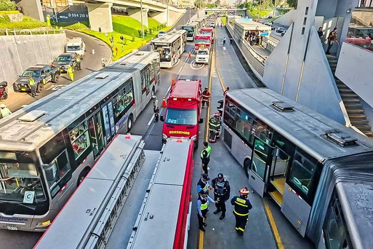 Los buses del Metropolitano fueron desviados temporalmente, mientras que agentes de tránsito trabajaron para permitir el paso de otras unidades y facilitar el ingreso de ambulancias.