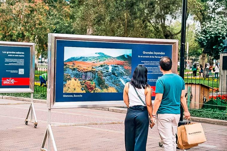 La muestra presenta imágenes e información de diversos paisajes emblemáticos de las cuatro naciones que conforman el Reino Unido: Inglaterra, Escocia, Gales e Irlanda del Norte. Entre los destinos destacados figuran el imponente valle de Glencoe en las Tierras Altas de Escocia; la encantadora localidad de Yorkshire en Inglaterra; la majestuosidad del Castillo de Cardiff en Gales; y la arquitectura distintiva del Puente de la Paz en Londonderry, Irlanda del Norte.