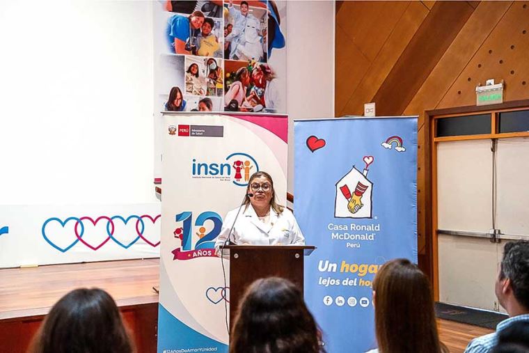En la ceremonia de aniversario, la directora general del INSNSB, doctora Zulema Tomas Gonzales, destacó además que la Casa Ronald ha sido un hogar lejos del hogar para más de 984 familias de todo el país, brindándoles alojamiento, alimentación y, sobre todo, apoyo emocional durante el tratamiento de sus hijos, además de la Sala Familiar espacio complementario de contención dentro del hospital.