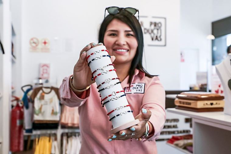 Entre los productos figuran carteras, neceseres, monederos, aretes, collares, pulseras, cerámica, tarjetas de San Valentín con filigrana, billeteras de cuero, toritos pisqueros, entre otros productos elaborados con la más alta calidad.