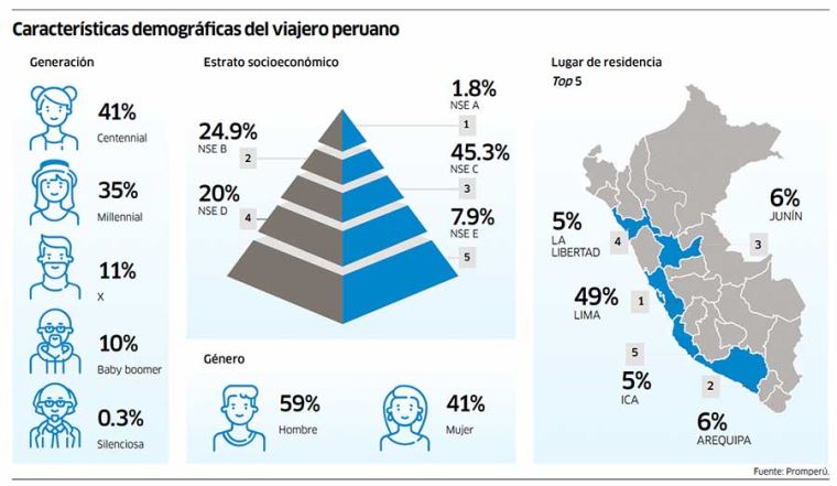 Explica que los principales mercados emisores de turistas en el país son tradicionalmente Lima, Junín, Trujillo, Piura y Arequipa. Pero hay tres nuevas regiones que destacan también: Cusco, Áncash e Ica.