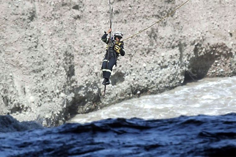 En una muestra de vocación de servicio, el suboficial se colocó una soga —conocida como línea de vida— y, con apoyo de otros elementos de seguridad, descendió al río para poner a salvo al animal. No obstante, al advertir que el can se encontraba unos metros más lejos, decidió retirarse la cuerda para poder alcanzarlo.