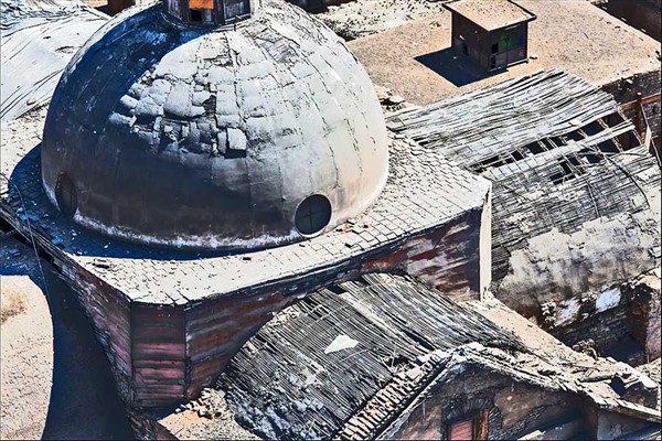 El sistema constructivo combina muros de adobe en los paramentos portantes con quincha en sectores superiores y bóvedas.