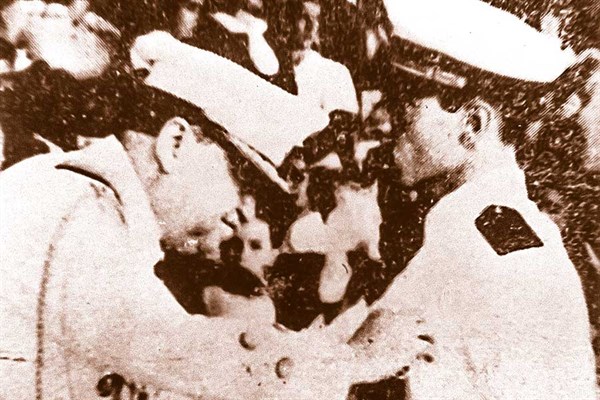 Ala de oro. Presidente Benavides pone insignia a José Quiñones.